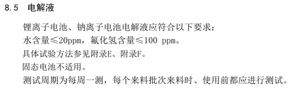 针对电芯部分,新国标则进行了最严苛的限定。首先,充电宝严禁使用梯次电池(即二手拆机电芯),并对正负极材料的水分、杂质、磁性物含量提出明确数值要求,这将从源头提升电池一致性和稳定性。电解液的水含量要求≤20 ppm、HF含量≤100 ppm,可以减少鼓包、漏液等风险。